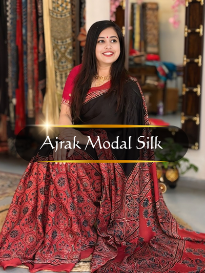Ajrakh Sarees collection at UNBEATABLE price